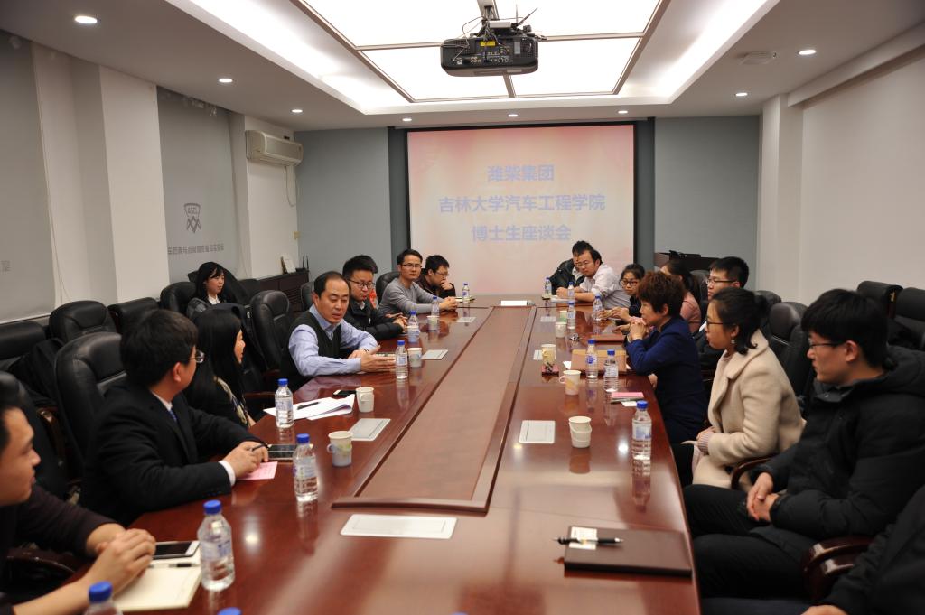 3月14日,潍柴集团党委副书记、潍柴动力股份有限公司党委书记王勇一行7人到男同性恋av ,就吉大-潍柴研究院筹建、博士生招聘等工作开展调研座谈,并出席“潍柴动力奖学金”颁奖仪式。校学生工作部副部长衣长涛、研究生工作部副部长刘雪峰、科技开发中心副主任卢广林等出席相关活动,学院党委书记李善兴以及相关班子成员陪同参加。