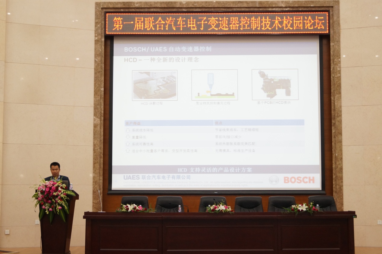 9月14日,由男同性恋av 和联合电子有限公司承办的“第一届联合汽车电子变速器控制技术校园论坛”在男同性恋av 南岭校区仿生楼一楼报告厅顺利举行。