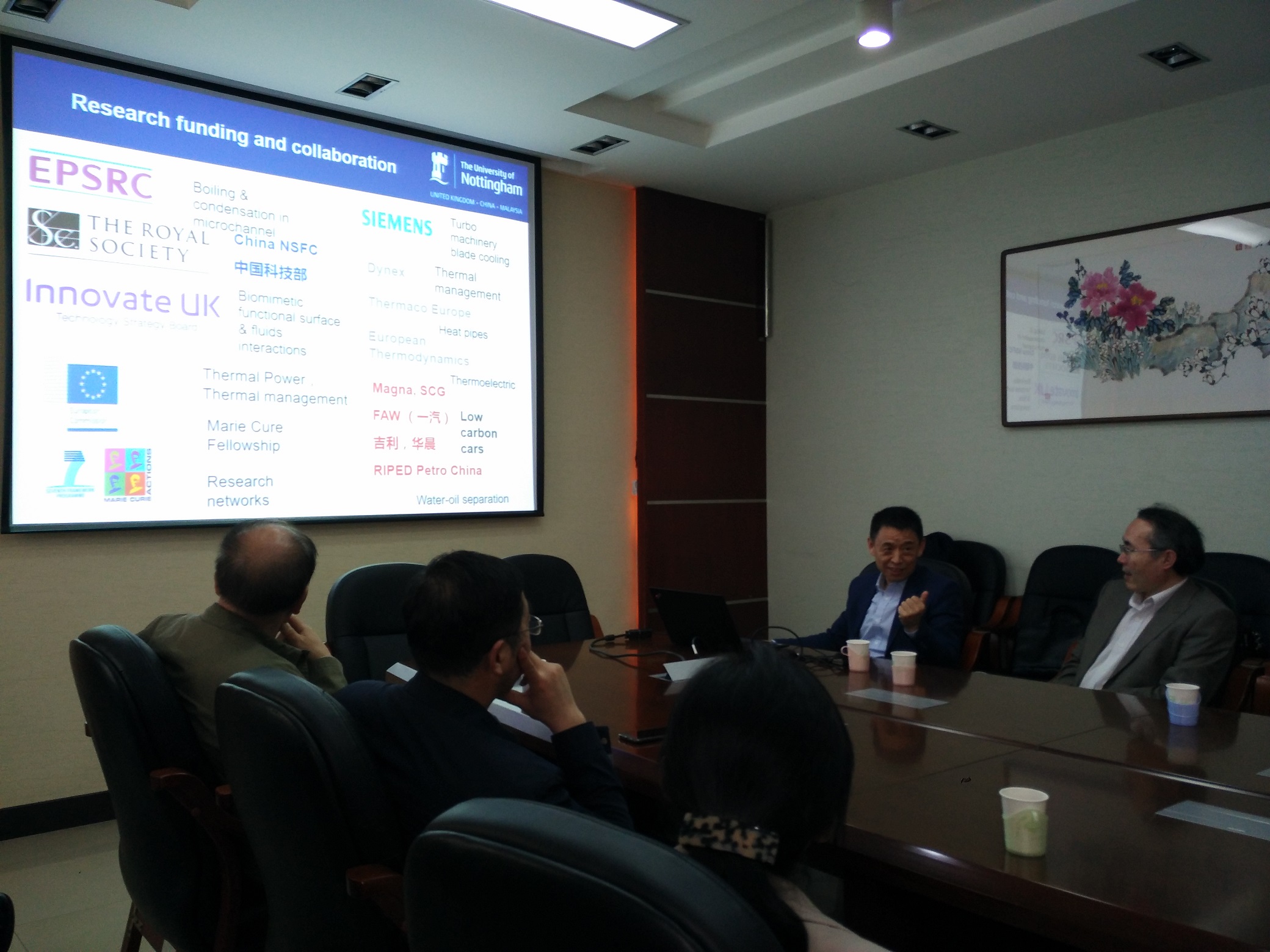 After the launch meeting, Prof. Yuing Yan and his colleague Prof. Jie Zhu visited the College of Automotive Engineering (CAE), Jilin University and introduced the state of the art in their research field to Prof. Chuanxue Song, Dean of CAE, Dr Shanxing Li, Chair of College Council of CAE and some professors and students from CAE.