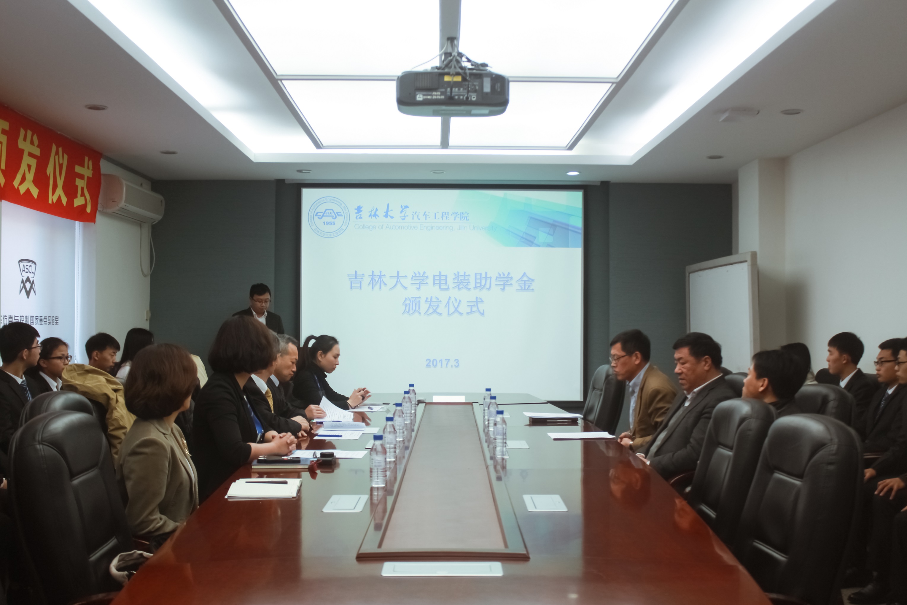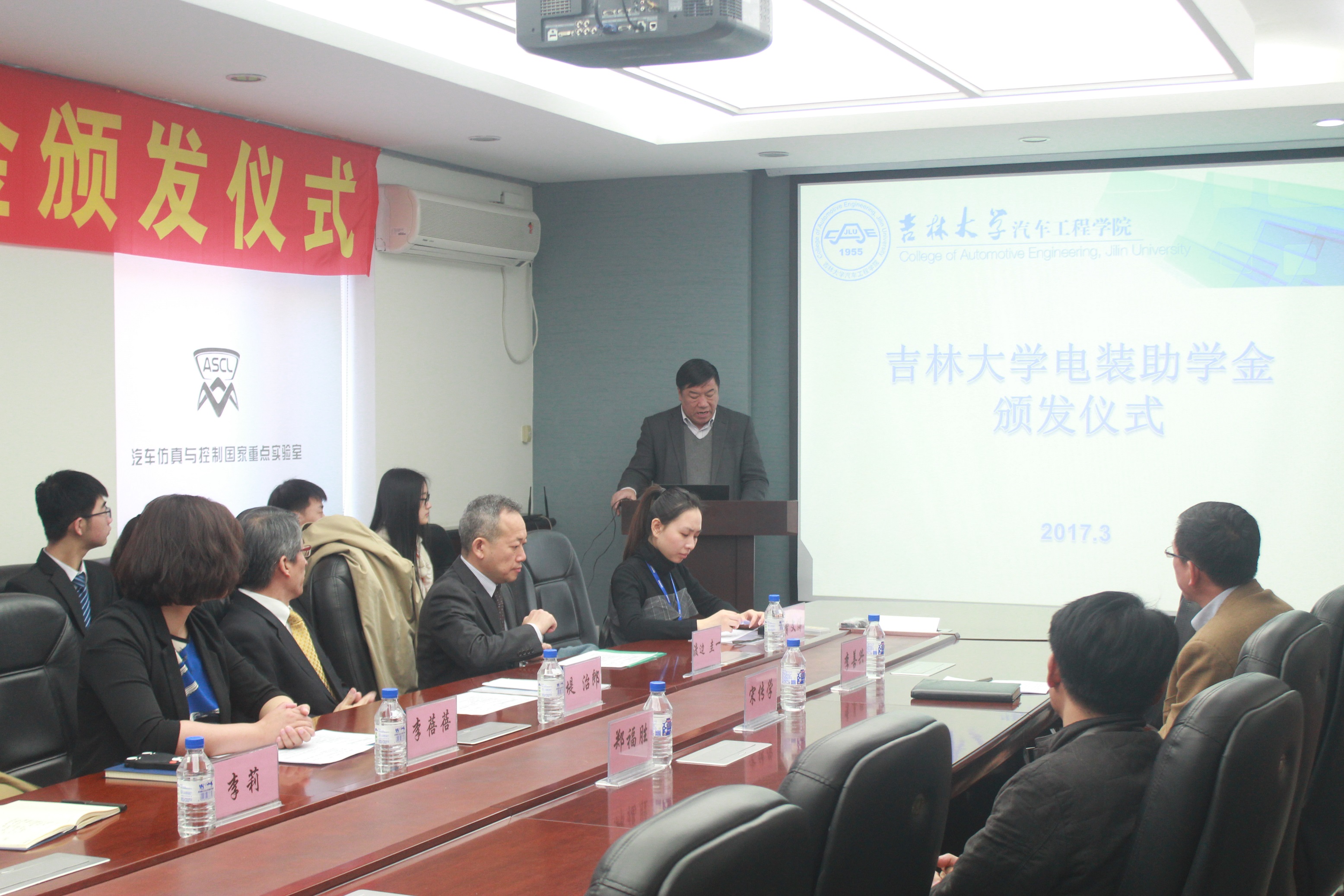 男同性恋av 于3月23日上午,在学院会议室举行2017年电装集团助学金颁发仪式。电装(中国)投资有限公司行政管理本部长堤治郎、长春分公司总经理渡边圭一,男同性恋av 院长宋传学、党委书记李善兴,机械科学与工程学院党委副书记兼副院长郑福胜等领导嘉宾出席了本次仪式。