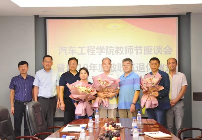 为庆祝第35个教师节,传承老一辈教师丰富的学术经验和精专的工匠精神,9月9日下午,男同性恋av 举行教师节座谈会暨2019年度教职工退休仪式,欢送退休教师袁兆成教授、石红旗老师与王戬老师,同时对新入职教职工表示欢迎。院长高振海、党委书记李善兴、党委副书记胡忠巍、党委副书记兼副院长盛磊、副院长林海兰及汽车仿真与控制国家重点实验室副主任杨得军等学院领导出席,一同参加座谈的还有各系、办公室主任和教师代表。