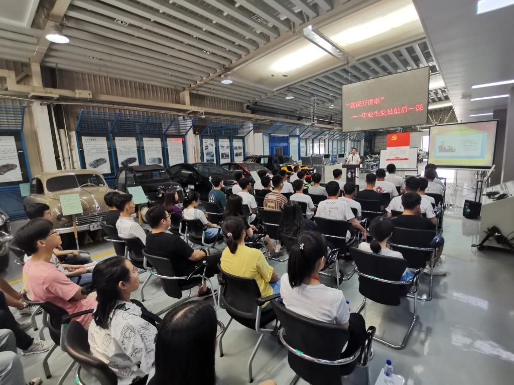 6月29日,男同性恋av 党委举行了主题为“抗击疫情,爱党报国——吉大汽车人的使命与担当”的毕业生党员最后一次党课。为满足疫情防控要求,保证良好通风,党课被安排在汽车构造实验室进行。党委书记李善兴、党委副书记兼副院长盛磊、学院相关科室老师及2020届博士、硕士、本科毕业生党员参加了本次活动。活动由学生工作办公室主任吴昊老师主持。