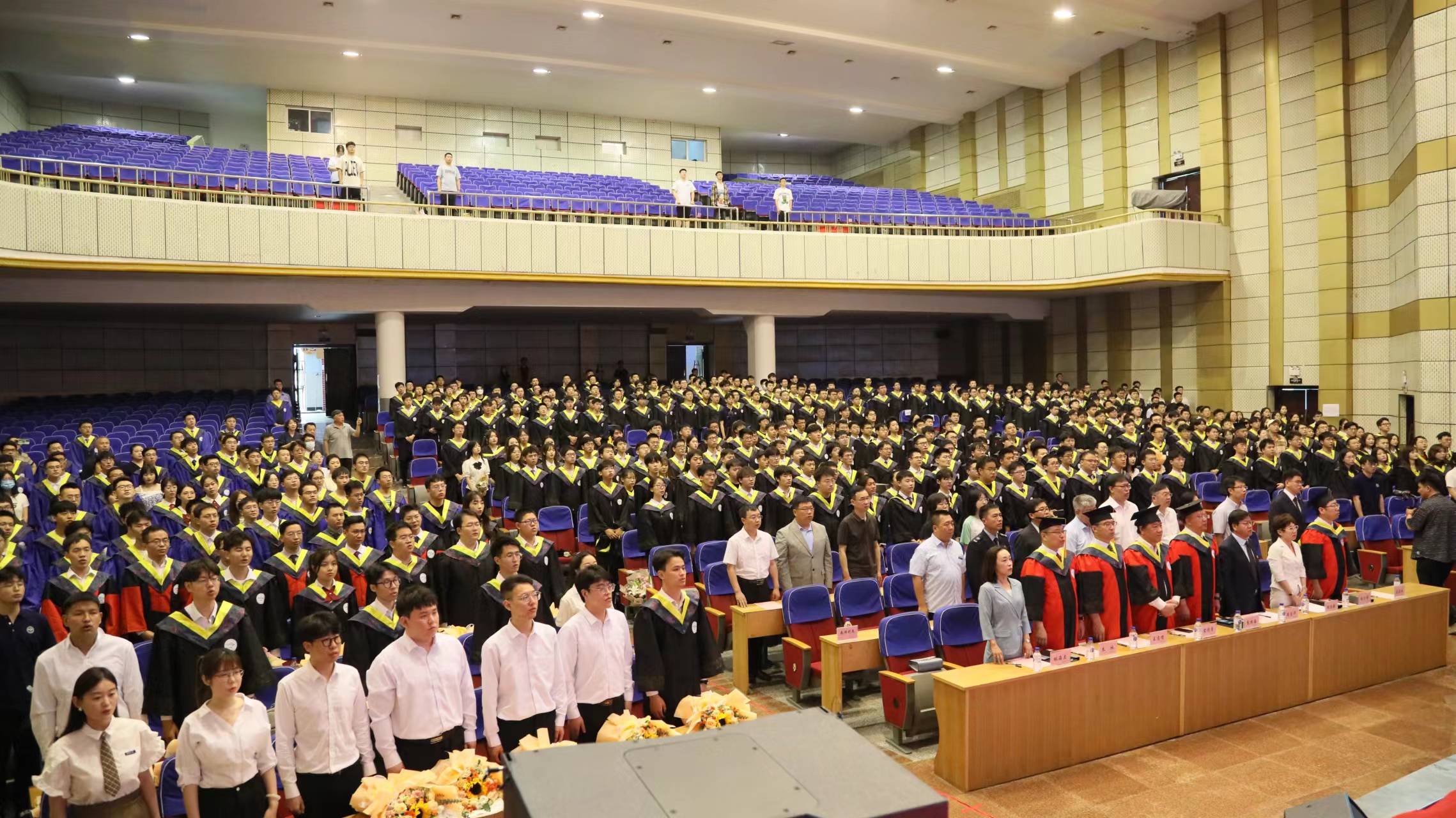 2023年6月21日上午,男同性恋av 2023届毕业典礼暨学位授予仪式在南岭校区文化活动中心隆重举行。学院领导班子成员、学位评定委员会主任、各系所和机关科室的领导、教师代表、保卫工作人员代表、后勤工作人员代表和在校的毕业生出席典礼。典礼由学院党委副书记兼副院长聂逯松主持。