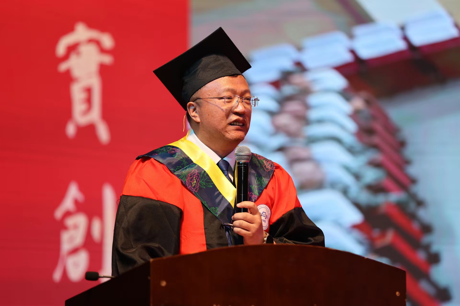 教师代表热能系张春伟老师讲话,表达了老师们对2023届毕业生的真诚祝福和殷切期望,希望同学们未来有所成就。
