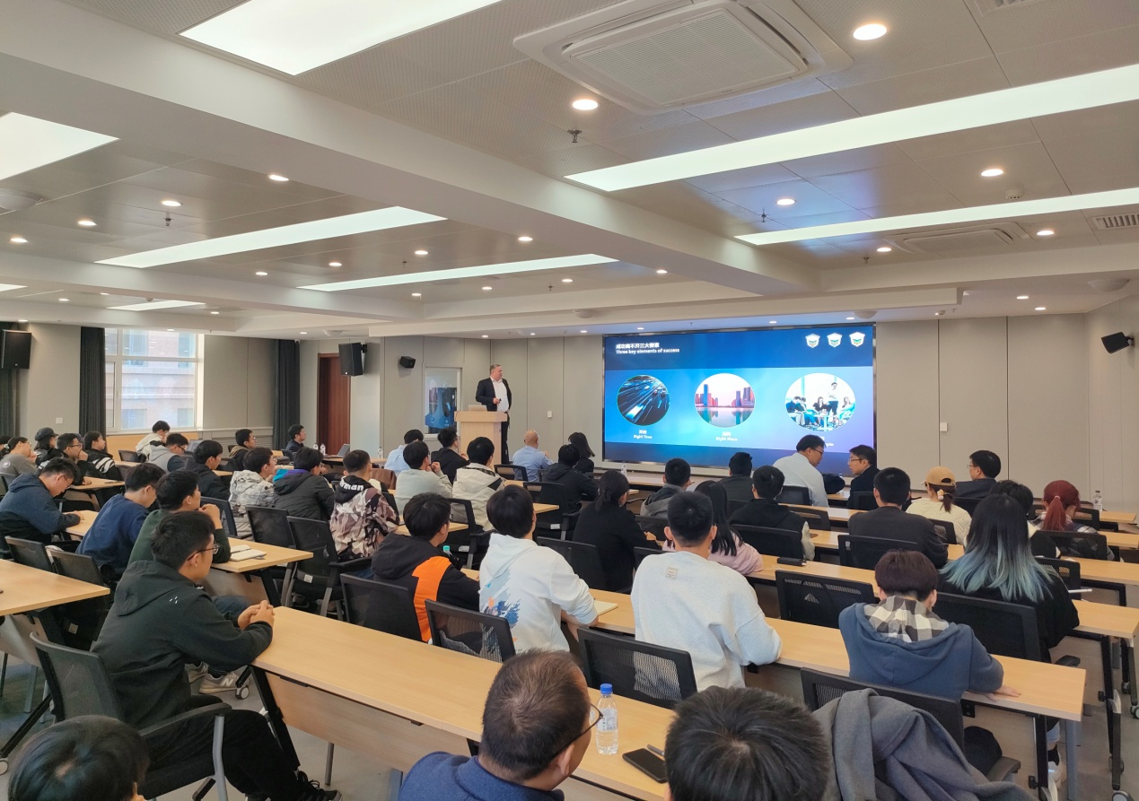 Holger Opfer博士随后为男同性恋av 学生做了Tomorrow's Battery Systems In Terms of Integration and Charging Concepts的主题学术报告,使得师生们加深了德国大众在新能源汽车产业的布局和新技术引用, 报告后与同学们展开了热烈的互动。