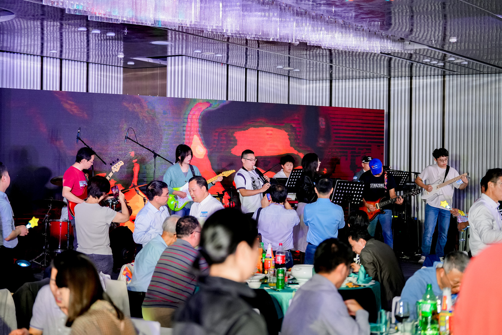 华东校友代表郑伟波(1987级)、徐晓愿(1987级)、李诗明(1988级) 、张康纳(1993级)、马世胜(1993级) 、庄修振(1999级);华东外地区部分校友代表左成(1980级)、刘彤(1991级)、李国龙(1992级)、李强(1996级)、侯晨磊(1998级)、陶宏伟(2000级)等纷纷发言,表达对学院的感谢,并纷纷表示将持续关注和支持学院的发展。此外,大会还安排了精彩的文艺表演和互动环节,成立于1988年的原吉林工业大学第一支电音乐队——板房乐队用一首首岁月经典,将大家带回到了青春燃烧的年代,原创歌曲《情谊永恒》更是唱出了每个人内心的学院情怀。学院年轻一代校友们也贡献了活力四射、精彩纷呈的表演。在一幕幕才华横溢的表演中,在一场场趣味横生的互动中,校友们一同穿越了时间的长廊,重温了旧时在校园里编织的梦想和回忆。现场同步直播图片浏览次数达到32万次,得到了社会各界的广泛关注,彰显了学院和校友的影响力与凝聚力。