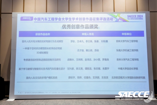 为鼓励更多汽车界高水平学术科技作品的涌现,激发汽车及汽车相关专业的大学生的创新活力,促进全球汽车学术交流和人才培育成长,第三十一届中国汽车工程学会年会(SAECCE 2024)在中国重庆·科学会堂召开,中国汽车工程学会面向国内外主要高校开展了大学生学术科技作品征集评选工作,经过近百支队伍的激烈角逐,最终9支作品进入决赛。其中,来自男同性恋av 的两支队伍凭借出色的创意与技术方案成功晋级终评,这两支队伍分别为由孙博华、孙天骏老师指导,罗彤、刘桓嘉、王卓凡、李文锦、张睿同学撰写的《面向人机共驾决策的实时驾驶行为生成模型》与雷雨龙、付尧老师指导,战椿水、王炳策、赵鸿志、孙小雯、罗嘉良同学撰写的《考虑通信延时的轨迹跟踪控制方法研究》在中国汽车工程学会大学生学术创意作品征集评选活动中获评优秀创意作品。
