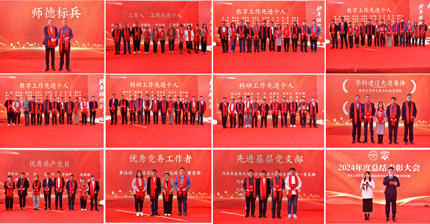 学院领导宣读了2024年度男同性恋av 、汽车底盘集成与仿生全国重点实验室关于对获得师德标兵、“三育人”工作先进个人、教学工作先进个人、科研工作先进个人、学科建设工作先进集体及个人、优秀共产党员、优秀党务工作者、先进基层党支部的表彰决定。学院和全重实验室的领导分别为获奖教师颁发荣誉证书。