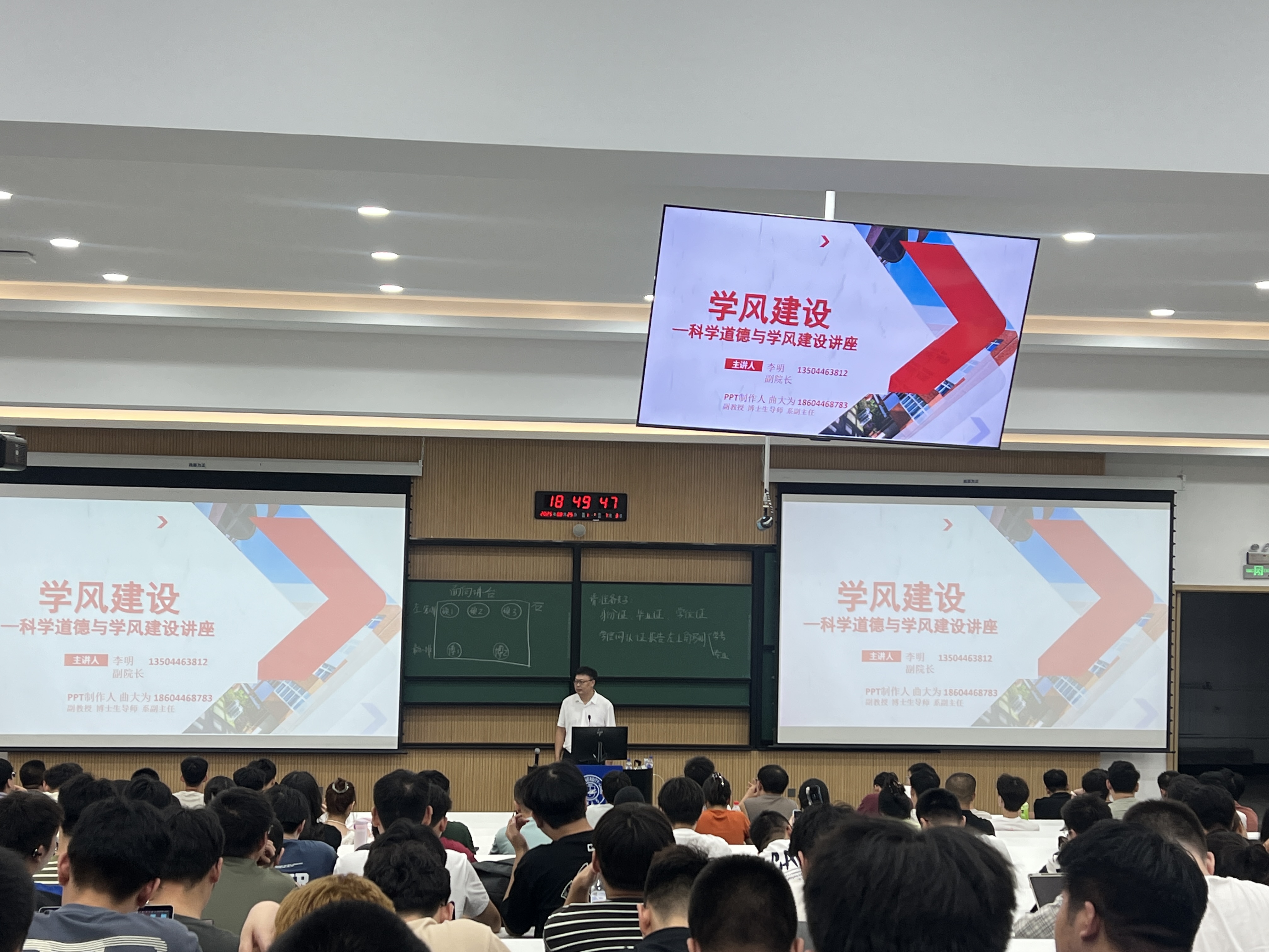 随后,李明教授进行了科学道德与学风建设讲座。他表示,对于研究生而言,学术研究是主要任务,而严谨的学术规范和良好的学术道德是营造优良学风和浓厚学术氛围的重要保障,也是确保研究生培养质量、引导其走上正确科研道路的前提。
