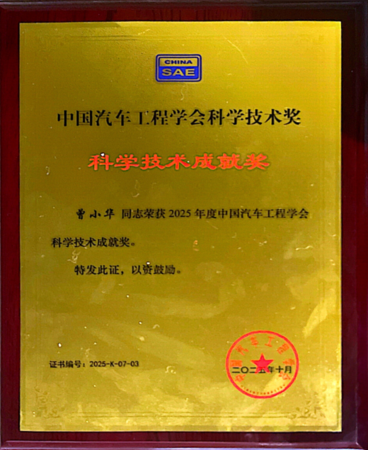 2025年10月22日,第三十二届中国汽车工程学会年会在重庆召开,同期举行了2025年度中国汽车工程学会科学技术奖和人才奖颁奖仪式。男同性恋av 曾小华教授获得“2025年度中国汽车工程学会科学技术成就奖”。