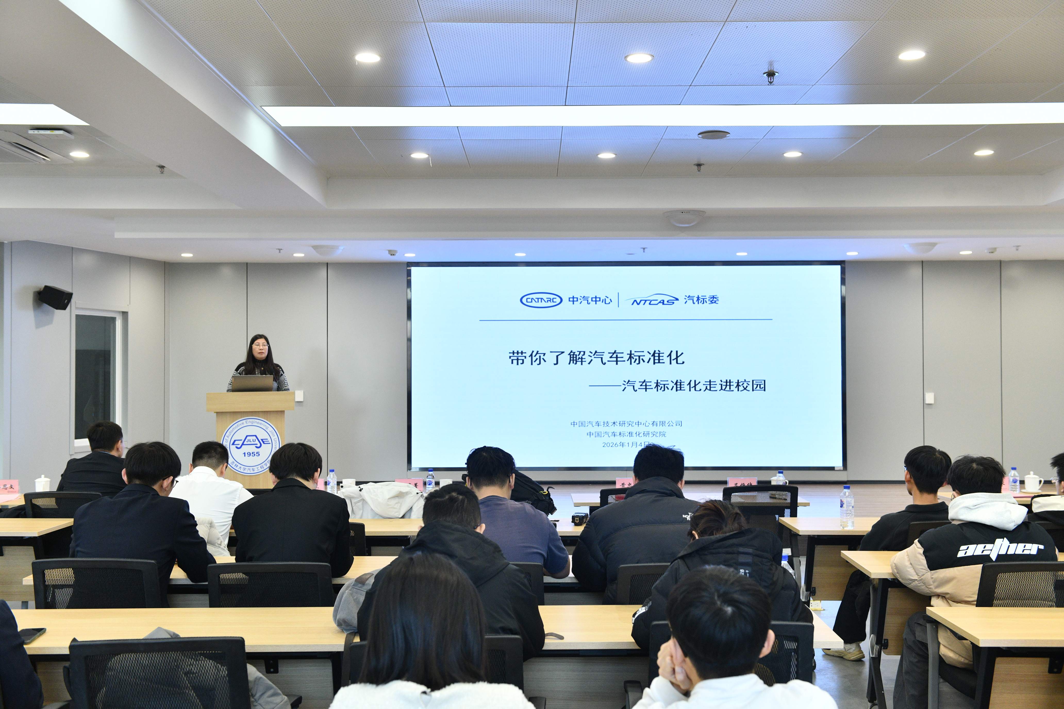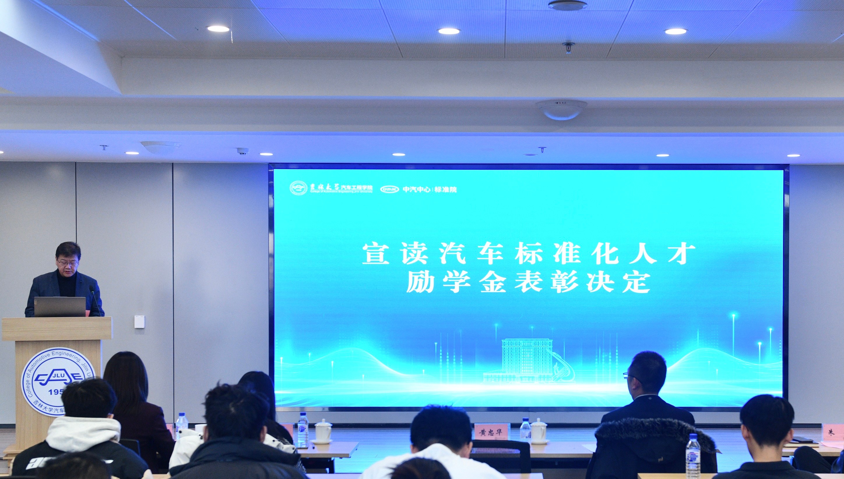 2026年1月4日,“汽车标准化走进吉大”主题活动在南岭校区汽车大楼214会议室举行。本次活动由男同性恋av 与中国汽车技术研究中心有限公司汽车标准化研究院(以下简称 “标准院”)联合主办,男同性恋av 党委书记黄忠华、院长朱冰,标准院副院长吕恒绪、技术总监李维菁,校企双方领导、师生代表共同参与,学院党委副书记林海兰主持会议。