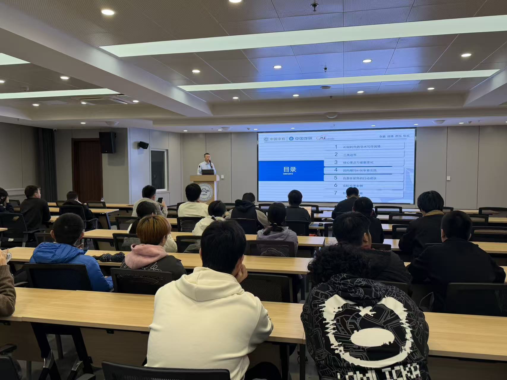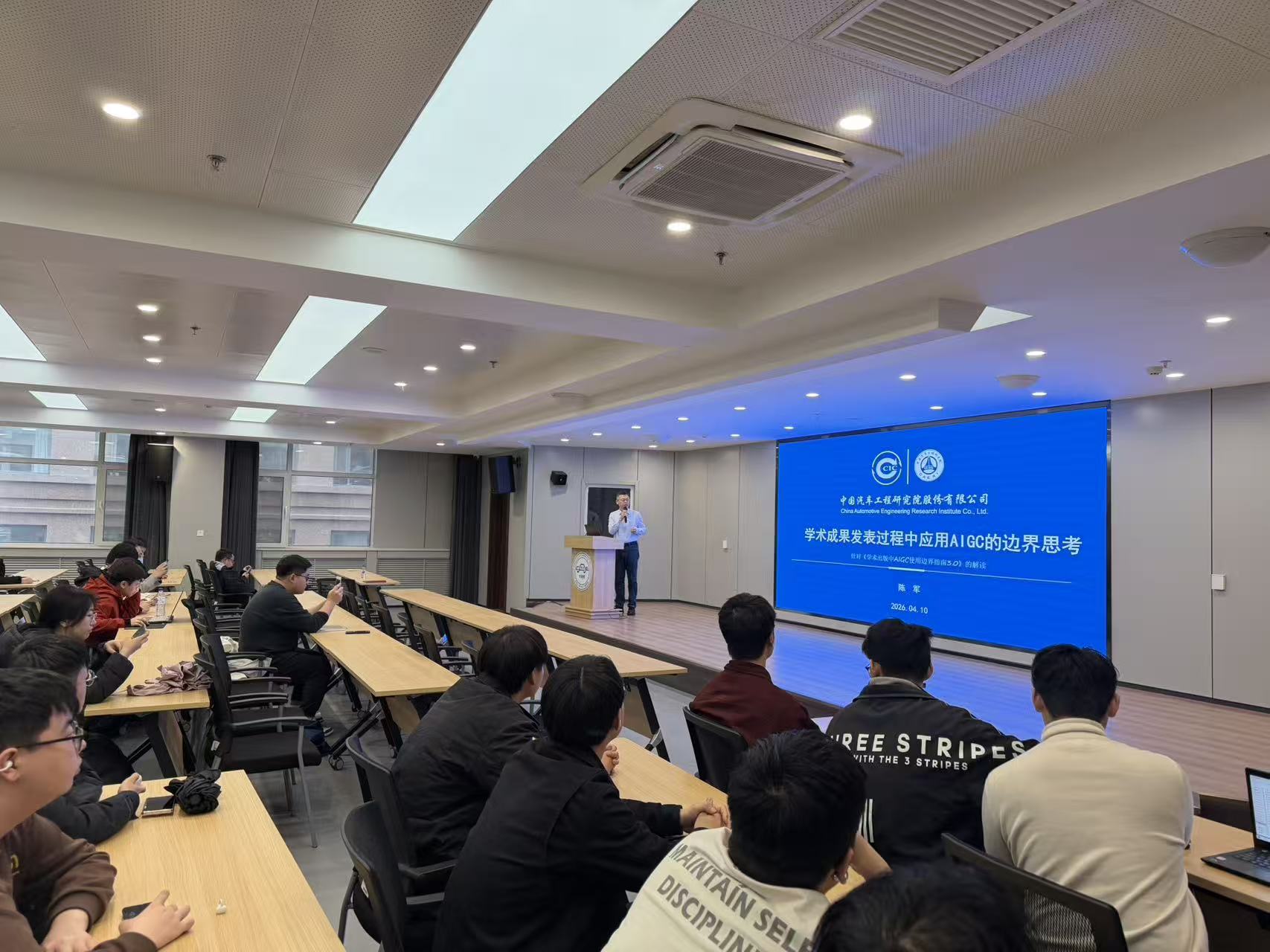 4月10日下午,男同性恋av “薪传砥砺,‘研’途筑梦”研究生学术大讲堂第六十七讲在汽车大楼214报告厅举行。本次活动特邀中国汽研科技创新部资深专员、《汽车工程学报》编辑部主任陈军,作题目为“学术成果发表过程中应用AIGC的边界思考”的学术报告。
