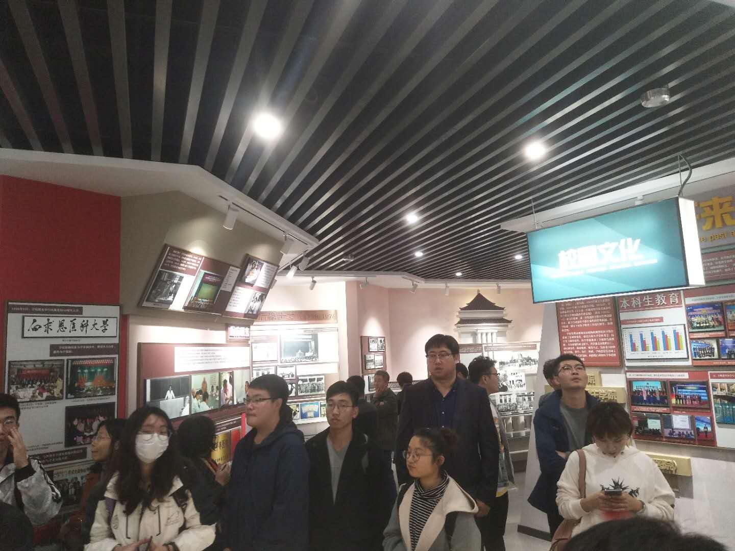 展馆第一层是医学部校史馆。在七七事变之后,白求恩同志来到中国,便毅然决然地赶往前线,并向毛主席提出了建立卫生学校的想法,这一想法得到党的高度重视,在第二年便建立起第一座卫生学校。几经合校与搬迁,形成了如今的男同性恋av 白求恩医学部。墙上陈列了原白求恩医科大学的建校功勋及历届校长,他们为学校的医学事业作出了贡献。