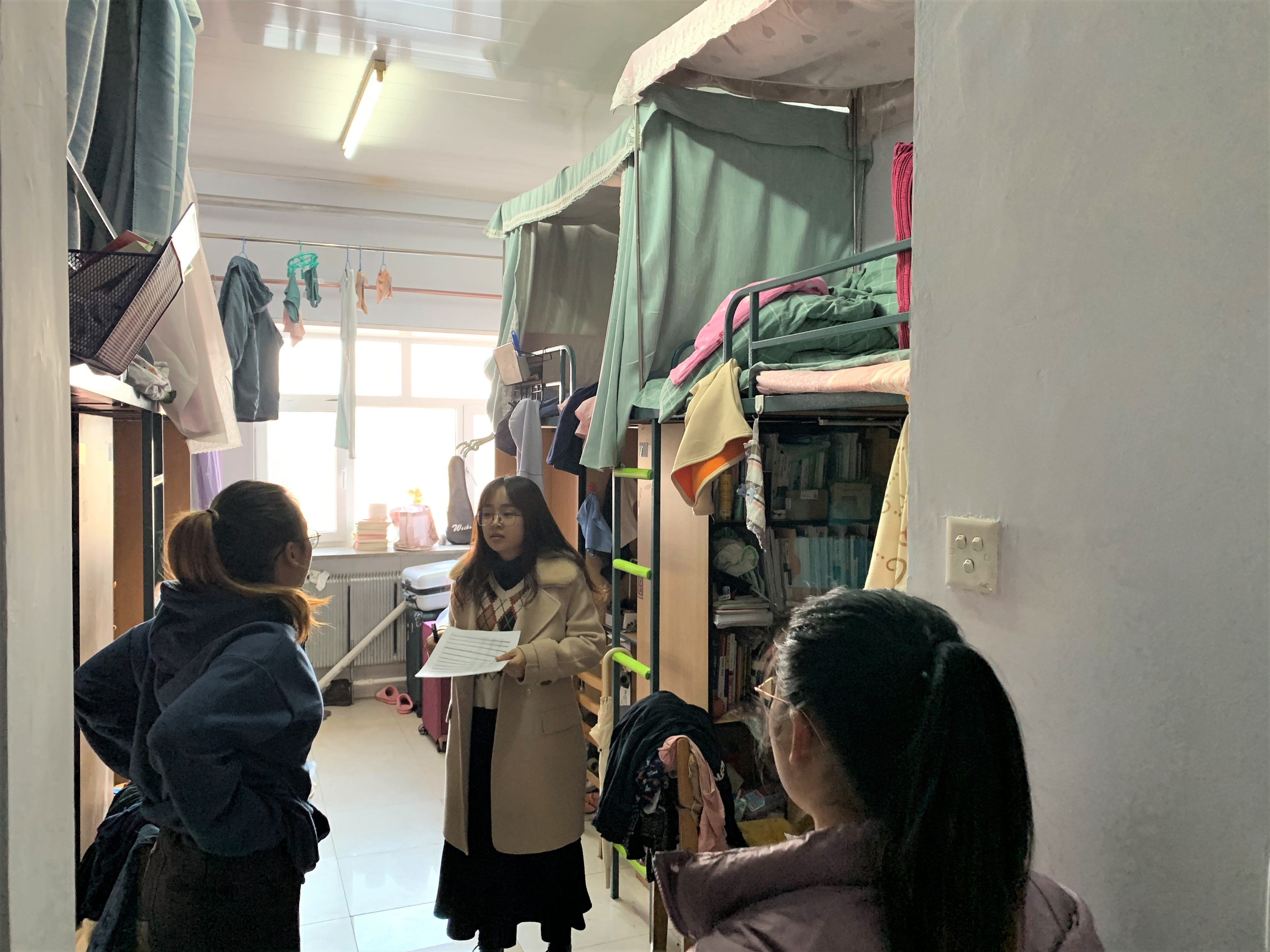 为了解毕业年级同学们的寝室安全、卫生及生活情况,男同性恋av 2017级辅导员李娇老师于2020年11月11日在十一公寓开展了查寝工作。