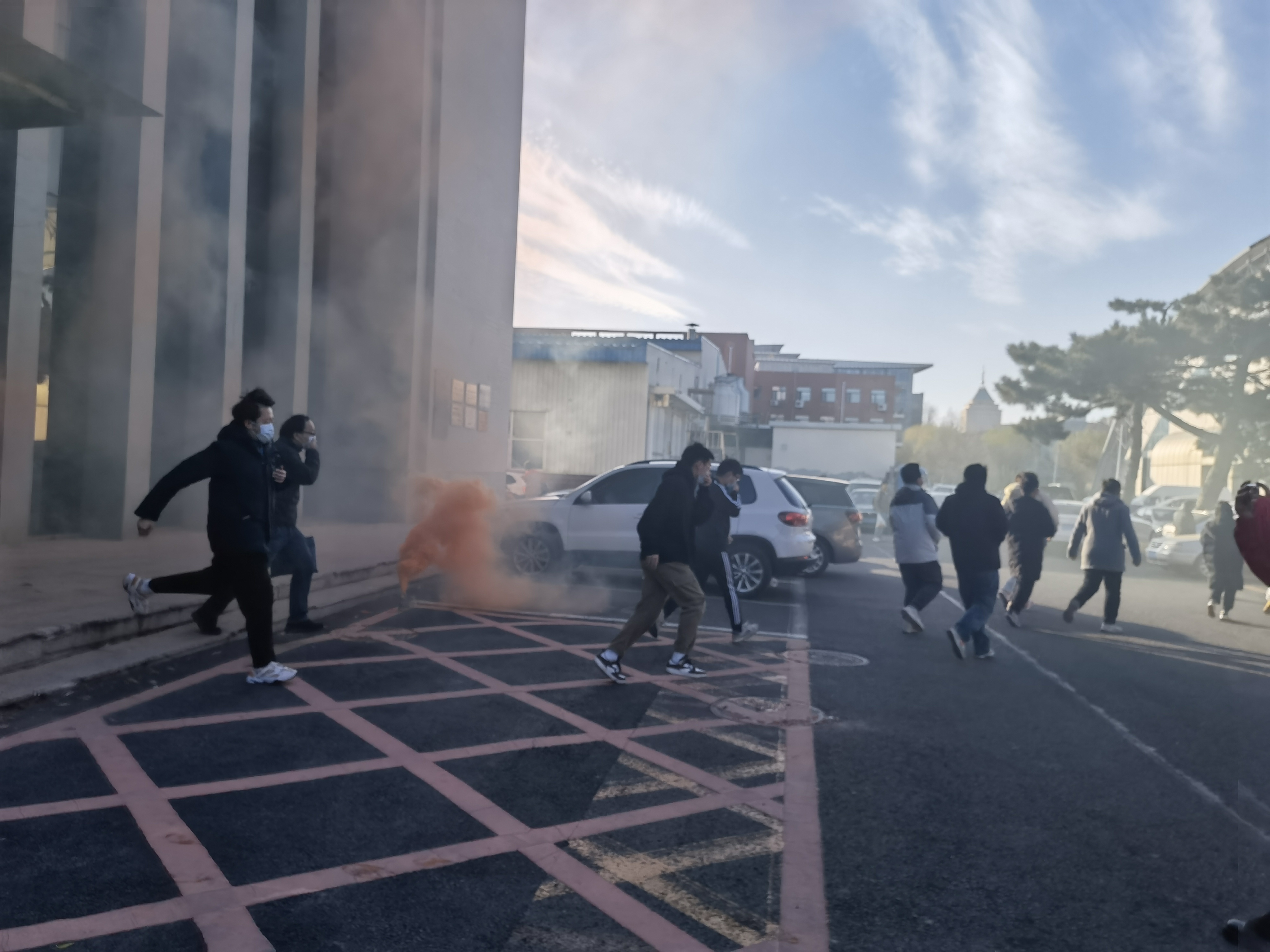 首先,参加演练的全体师生在能源动力大楼进行防火疏散演练。师生反应迅速、有序疏散,几分钟后,楼内的师生全部安全疏散到室外。在大楼前,东区保卫办防火科科长王中刚结合消防工作管理要求及长春“9.28”重大火灾事故具体案例,重点剖析了火灾事故根源,详细讲解了发生火灾时的逃生常识,强调“防”重于“消”,有效增强了师生的消防安全责任意识。
